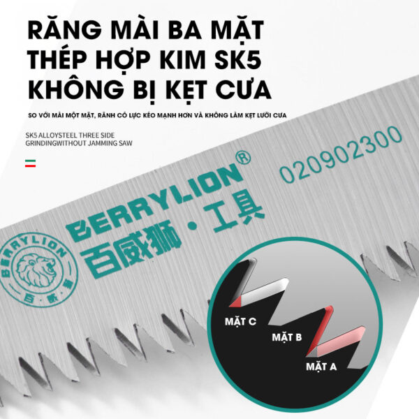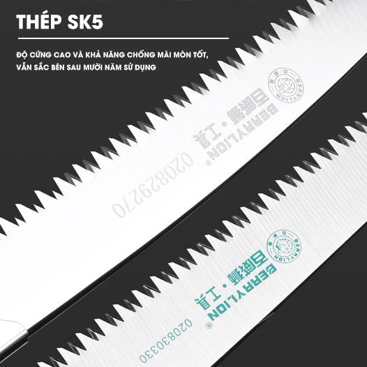 – Lưỡi cưa bằng thép SK5 theo tiêu chuẩn của Nhật Bản, có độ bền cao, dẻo dai và đàn hồi tốt, độ cứng 60-62 HRC