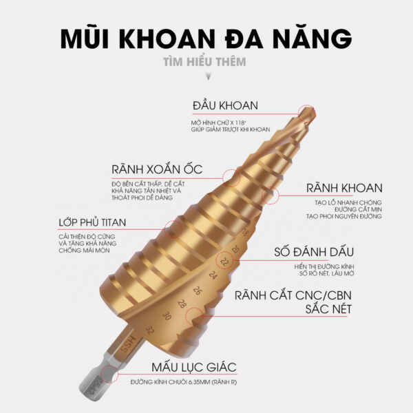 + Mũi khoan tháp 4-32mm